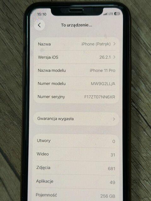 Witam Sprzedam iPhone 11 Pro 256 BG , stan bardzo dobry, kondycja baterii 93 %, Na ekranie jest założona folia ...